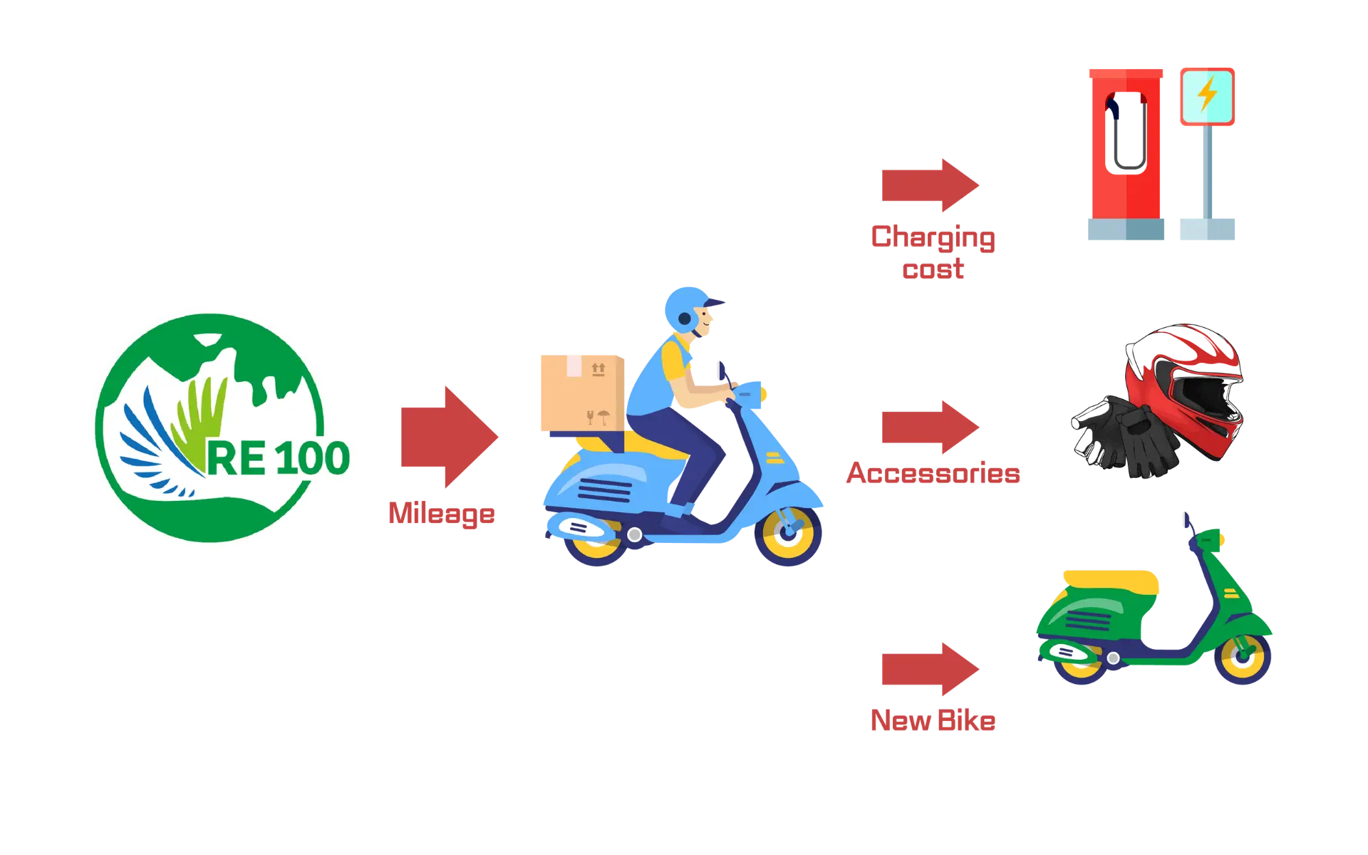 Replace combustion vehicles with electric mobility, powered by RE100 renewable energy and eco-friendly charging stations, while tracking carbon reduction via IoT technology.